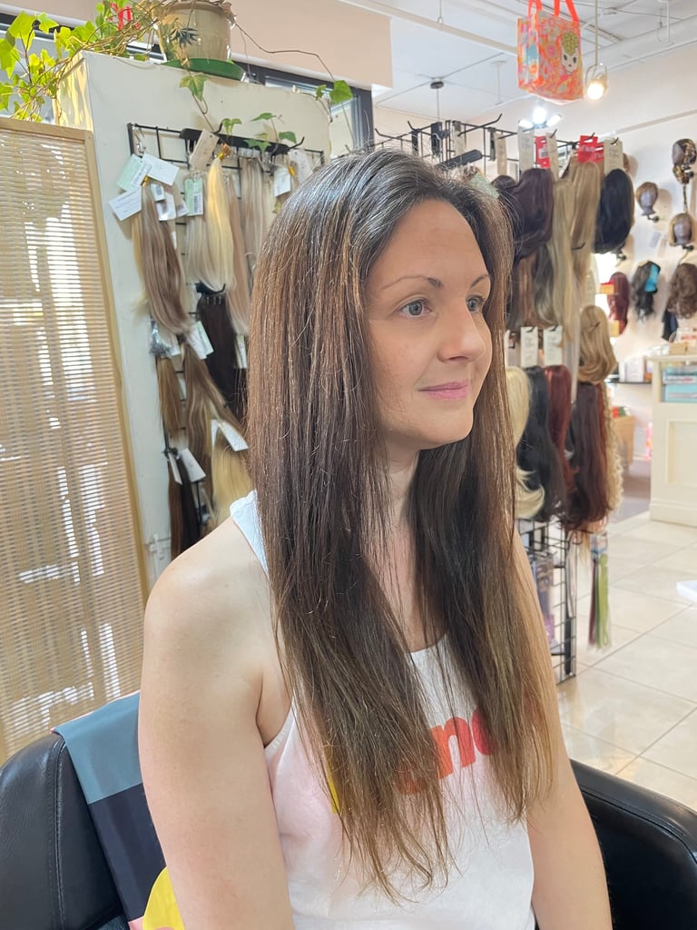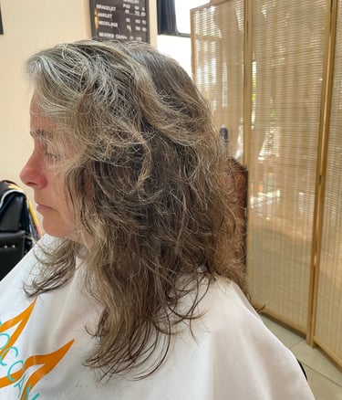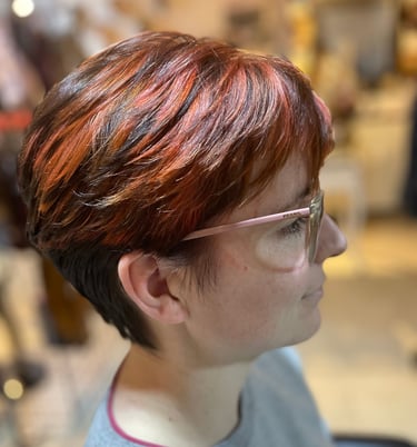 Haircut and colour to tone out the brassiness.