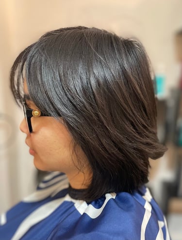 Scissor and razor bob style.
