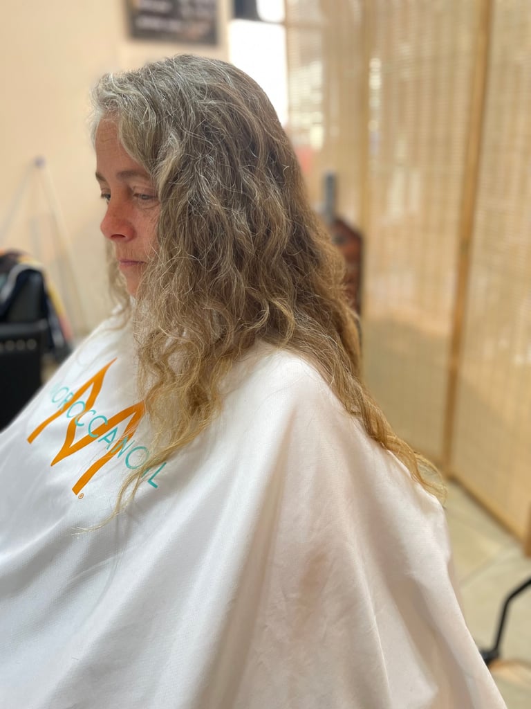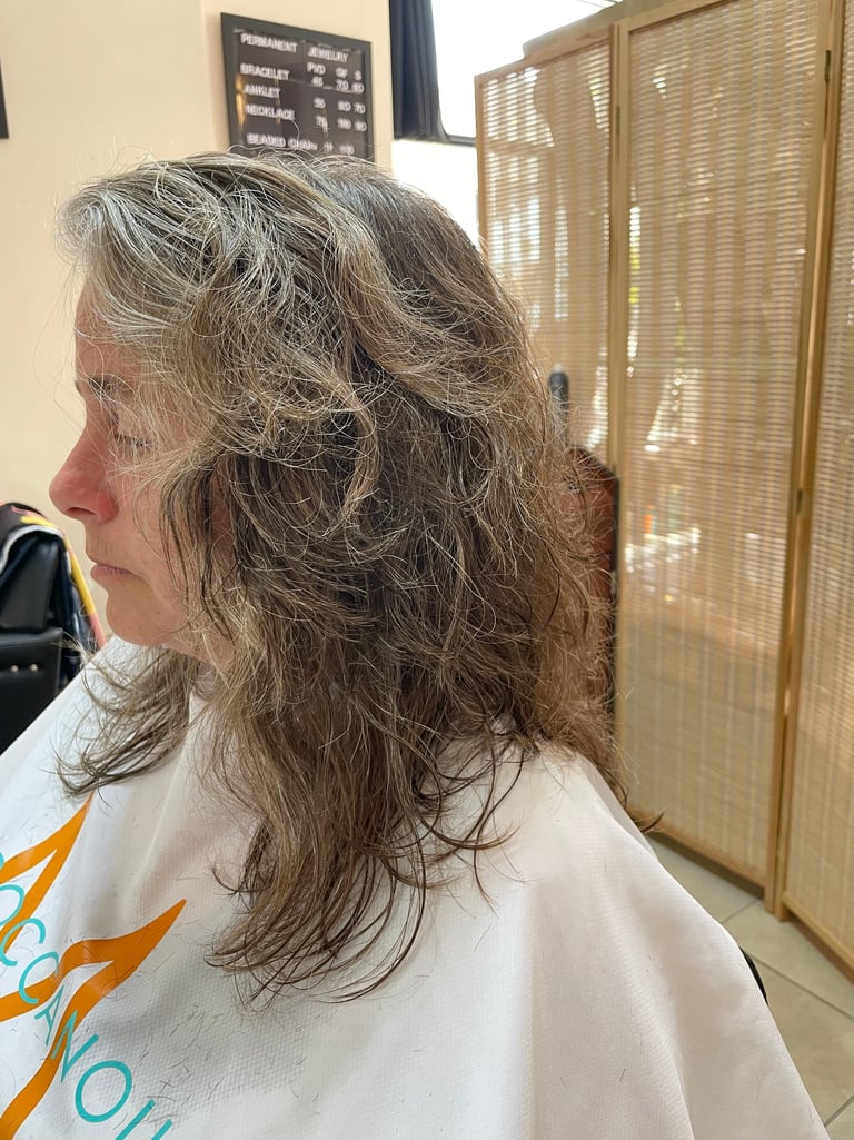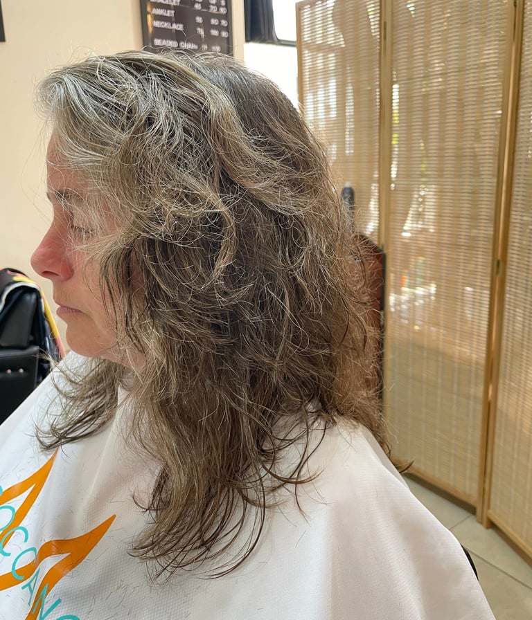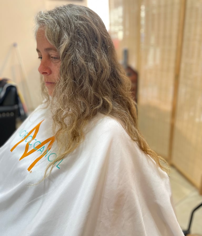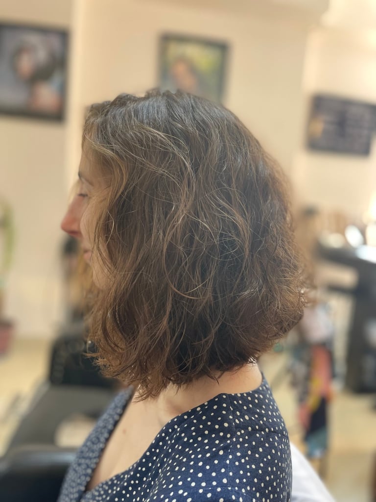 A dry haircut and a moisture mask to rejuvenate the curl.